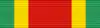 Орденская лента шёлковая муаровая красного цвета с зелёной и жёлтой полосами по краю.