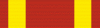 Орденская лента шёлковая муаровая красного цвета с двумя жёлтыми полосками, отстающими от края.