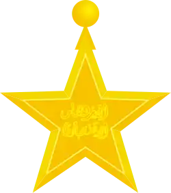 Знак ордена – пятиконечная матированная звезда с гладким бортиком. В центре звезды надпись на арабском языке в две строки