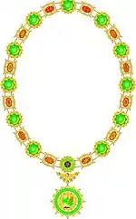 Орден выполнен в виде цепи из золота 750 пробы, состоящей из 24 звеньев, 12 из которых имеют форму шестнадцатигранника из двух переплетенных восьмигранников, а другие 12 выполнены в виде стилизованных национальных узоров. Все звенья декорированы бриллиантами.