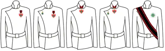 - Офицер (с 1939 года) – знак ордена на нагрудной ленте и специальный знак на правой стороне груди.
