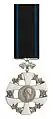 Медаль ордена имела диаметр 33 мм. Знаки трех степеней различались цветом металла: золотой, серебряный и бронзовый. На лицевой стороне медали был изображен знак ордена, на реверсе повторялся орденский девиз в четыре строки. Медаль за боевые заслуги имела подвеску с мечами. Лента медали такая же, как и у ордена.