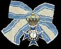 На оборотной стороне — дата учреждения: 1827. По окружности — девиз ордена: UNSER ERDENLEBEN SEY GLAUBE AN DAS EWIGE (Наша земная жизнь есть вера в бессмертие). Знак носился на банте из орденской ленты (белой с двумя голубыми полосками) на левой стороне груди либо, в праздничные дни, — чрез плечо на ленте у левого бедра[3] .
