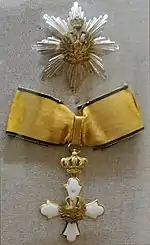 При награждении за военные заслуги между перекладин креста добавлялись два скрещенных меча. На звезде ордена мечи помещались за изображением Феникса.
