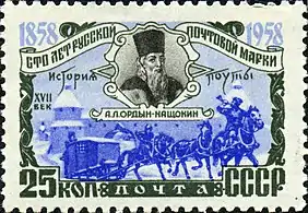 Ордин-Нащокин на почтовом блоке СССР «100 лет русской почтовой марки» (1958)