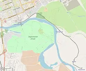Станция Комсомольская находится в центре города возле пешеходного моста через реку Урал. Затем идёт Пионерская (остановка производится по просьбе пассажира ), где есть несколько пляжей. Кировская, Дубки — детские оздоровительные лагеря.