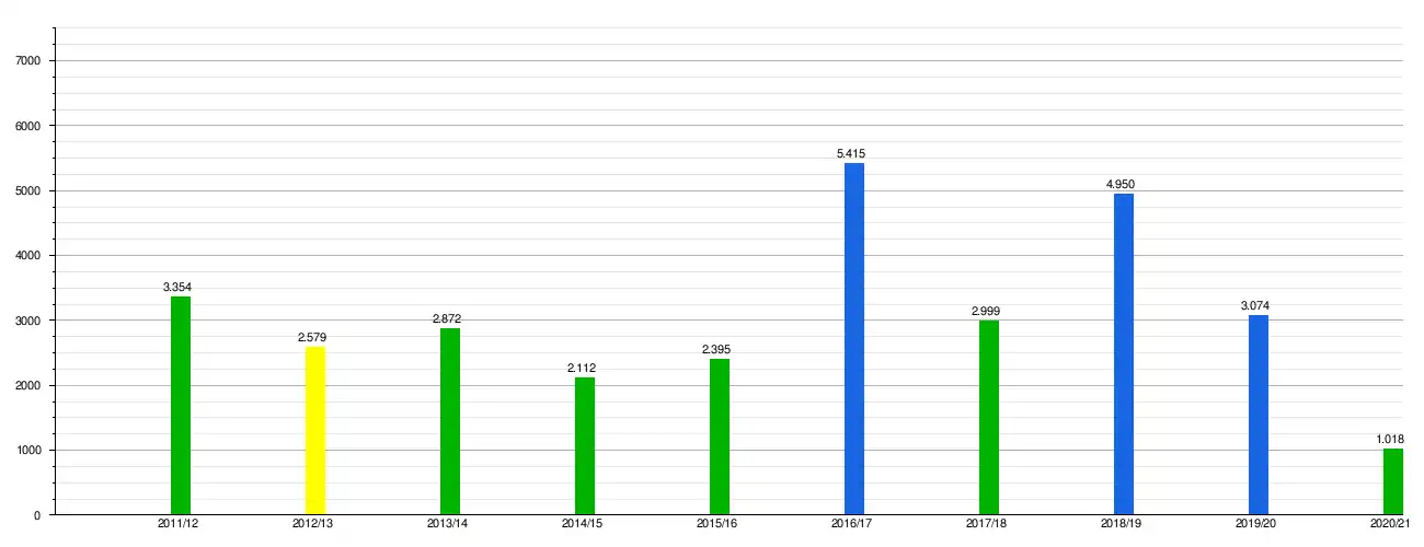 - средняя посещаемость матчей «Оренбург» по сезонам.Информация с сайта transfermarkt.ru