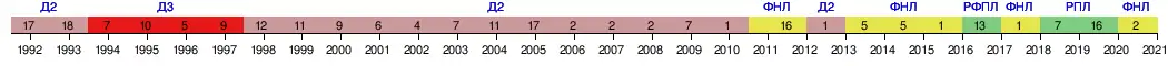 | 1993 | - — Вторая лига, 6 зона | 18 | — |