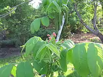 Дерево ореха айлантолистного с окружностью 265 см (на высоте 1,5 м от земли); листья, тычиночные серёжки и пестичные цветки; плоды. | ||||||||||
