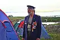 М. Г. Орешета у памятника капитану А. Юневичу (п-ов Средний)