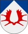 Геральдическое описание: На синем поле — серебряный отрезок мантии, на котором расположены красные лосиные рога[5].