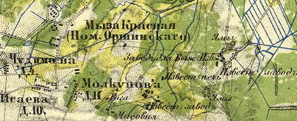 Согласно «Спискам населённых мест Российской Империи» от 1862 года, Красной Мызой назывались три смежные с мызой Оржицы деревни: Малкуново, Исаева и Чудинова[11].