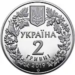 На аверсе монеты в обрамлении венка, образованного из изображений отдельных видов флоры и фауны, размещен малый Государственный Герб Украины и надписи: «УКРАЇНА/2/ГРИВНІ/2019» и логотип Банкнотно-монетного двора Национального банка Украины.