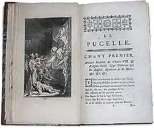 «Орлеа́нская де́вственница» (фр. La Pucelle d'Orléans)[1] — сатирическая пародийная поэма Вольтера, где события жизни национальной героини (тогда ещё не канонизированной святой) Жанны д’Арк представлены в сниженно-комическом ключе, столь же иронически показаны французские рыцари и церковь. Изданная анонимно, «Девственница» стала одним из самых популярных неподцензурных произведений Вольтера, она получила известность и за пределами Франции как образец скептически-иронического «вольнодумства» XVIII века. «Орлеанская девственница» в молодости была одной из любимых книг Пушкина, он подражал ей в «Руслане и Людмиле», начал её перевод, а впоследствии посвятил «преступной поэме» своё последнее произведение, весьма критическое по адресу Вольтера.