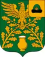 Описание герба гласит: «В зелёном поле вверху — золотой орёл, держащий лапами две дубовые ветви того же металла, выходящие в оконечности из углов и положенных верхними концами накрест; в оконечности всё сопровождено золотым же кувшином (без рукояти), полным серебряного молока. В золотой левой вольной части со скруглённым внутренним углом — старинная зелёная княжеская шапка, отороченная чёрным собольим мехом, над которым — золотое украшение („городок“) с жемчужиной».