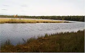 Расположено в сосновом лесу в болотистой местности между реками Ивкина (1,5 км на запад) и Шиповка (0,9 км на северо-восток)[3]. На озере находится несколько мелких островков. Юго-восточный берег вплотную порос лесом, северо-западный имеет небольшой пляж (шириной около 50 м)[3]. В летнее время зарастает[9].