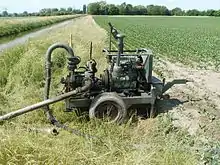 Оросительная система — территория, на которой расположены гидротехнические (водозаборные и водонапорные сооружения, каналы, трубопроводы) и эксплуатационные (дороги, мосты) сооружения, обеспечивающие её орошение, бывают открытые и закрытые.[7] Оросительные системы в общем случае состоят из нескольких компонентов[8][9]: