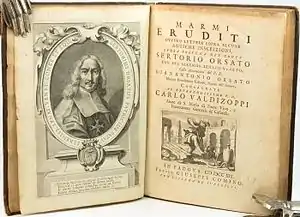![]() Книга "Marmi eruditi ovvero Lettere sopra alcune antiche inscrizioni, opera postuma del conte Sertorio Orsato" с портретом Серторио Орсато. 1719 г. | |