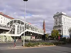 | Вид от станции метро | Портал Эммаускирхе | Вид с площади Лаузитцер |