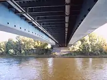 Мост Золотые ворота, где при реконструкции в 1982—1986 года первоначальное железобетонное полотно было заменено на стальные ортотропные плиты