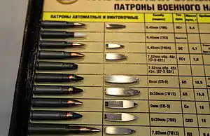 В современном стрелковом оружии Российского производства наиболее распространены патроны калибров 5,45×39 мм, 7,62 мм для различных видов оружия, 9×18 мм; для гладкоствольного оружия — патроны 12-го калибра.