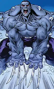 Оружие Эйч возник в результате эксперимента, направленного на создание идеального убийцы, сверххищника. Внешне он выглядит как гибрид Халка и Росомахи, однако при его создании также были использованы ДНК Саблезубого, Леди Смертельный Удар, Тропы Войны и Домино.[к1]