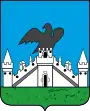 В синем поле белый город, на воротах которого чёрный одноглавый орёл.