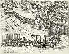 На первом этапе осады испанцы возвели линию осадных сооружений и фортов вдоль устья Шельды. Второй этап включал в себя строительство моста через Шельду и блокаду водных путей. Построенный мост представлял собой шедевр инженерной техники: имея в длину около 730 метров, он был укреплён пушками с обоих берегов.