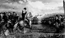 Гравюра с изображением Итана Аллена, требующего сдачи форта Тикондерога