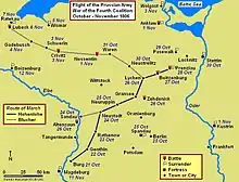 Среди прусских солдат, отступивших к Кольбергу после Йены и Ауэрштедта, был второй лейтенант Фердинанд фон Шилль, которому после выздоровления в доме сенатора Кольберга Вестфала после тяжёлой травмы головы было приказано патрулировать районы к западу от крепости с небольшим кавалерийским отрядом[15]. Получив от местных крестьян информацию о передвижениях французов, ему удалось захватить несколько французских офицеров и солдат, собрать продовольствие и финансовые ресурсы в соседних городах и деревнях, а также набрать добровольцев в своё подразделение изнутри и за пределами Кольберга.