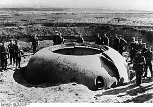 ![]() Немецкие солдаты у захваченных укреплений | |||