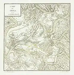 Окружив лагерь, Фридрих не сделал никаких приготовлений к его штурму, рассчитывая взять саксонцев измором. Первый прусский солдат пал под Пирной лишь 12 сентября в результате случайной перестрелки. Вместо того, чтобы заниматься приготовлениями к штурму, Фридрих направляет первые отряды в Богемию, в том числе, с разведывательной целью, так как, по слухам, австрийский фельдмаршал Максимилиан Улисс граф Броун[1] собирает где-то в северной Богемии армию для помощи саксонцам.