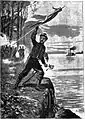 Подполковник Гаспар Кампос, командир батальона "Охотники Риохи", спасает флаг батальона, бросая его в реку.