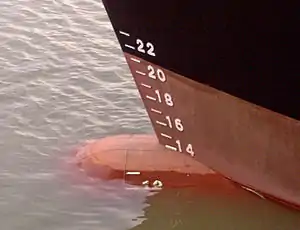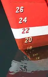 Носовая шкала марок углубления, показывающая текущую осадку корабля