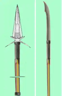 Осадные ножи представляет собой видоизменение боевой косы[1]. Представлял собой оружие, напоминающее одновременно алебарду и глефу, но большей (до 3 метров) длины. Наконечник (перо) имел вид широкой режущей поверхности, с массивным крюком, позволявшим цепляться за стены крепостей и забираться на них.