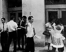 5 и 6 августа Освальд посетил магазин кубинского эмигранта Карлоса Бронье. Бронье был делегатом Революционного Студенческого Директората (DRE), организации, выступающей против режима Фиделя Кастро. Позже Бронье рассказал комиссии Уоррена, что он считал, что целью посещений Освальда было внедрение в его группу[55]. 9 августа Освальд в центре Нового Орлеана раздавал листовки в поддержку Кастро. Бронье столкнулся с Освальдом, утверждая, что он уведомлён о листовках Освальда от друга. Завязалась драка, и Освальд, Бронье и два друга Бронье были арестованы за нарушение общественного порядка[56]. Перед тем как покинуть полицейский участок, Освальд захотел поговорить с агентом ФБР. Приехавший агент Джон Куигли более часа беседовал с Освальдом[57].