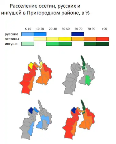 Ингушские и осетинские поселения на территории равнинной и предгорной части современных Северной Осетии и Ингушетии известны уже с конца XVII века[4]. Исторические и этнографические материалы свидетельствуют, что осетины и ингуши обитали смешанно в пределах нынешних Пригородного района и городского округа Владикавказ. По сведениям 1770-х годов самыми восточными осетинскими поселениями являлись Ларс, Чми и Балта, расположенные по левому берегу Терека в Дарьяльском ущелье[5]. Ныне они входят в состав городского округа Владикавказ, располагаясь у границ восточной части Пригородного района.