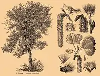 Слева направо: осина в «Энциклопедическом словаре Брокгауза и Ефрона»; листья; серёжки; кора; осенняя окраска листьев | ||||||||||