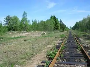 ![]() Рытвина и холм слева от полотна — остатки платформы | |