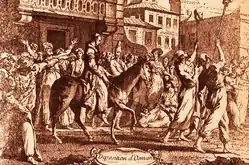 Вернувшись к Осману, шейх аль-ислам передал ему фетву и посоветовал удовлетворить требования мятежников, однако султан прогнал парламентёров, порвал фетву и угрожал расправой. Это привело к тому, что янычары ворвались в дом Омера-эфенди и устроили погром. Потом толпа нашла Мустафу, запертого в старом дворце, отвела его в Орта Джами и объявила султаном. Испуганный Осман повелел выдать бунтовщикам Дилавера-пашу, того нашли и вытолкнули за ворота, где он тут же был изрублен. Осман объявил, что отказывается от поездки в Азию, но он всё ещё не понимал серьёзности ситуации и не соглашался сместить Омера-эфенди и Сулеймана-агу. Между тем янычары ворвались во двор дворца Топкапы. Великий визирь и главный евнух попытались их остановить, но были растерзаны[2]. Османа, спрятавшегося в тайнике, нашли, одели в лохмотья и потащили через город, насмехаясь и издеваясь, на кляче в Орта Джами[28].
