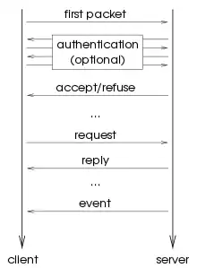 Связь между сервером и клиентами осуществляется путём обмена пакетами по каналу. Соединение устанавливается клиентом (как клиент начнёт в протоколе не определено). Кроме того, клиент отправляет первый пакет, содержащий используемый порядок байтов, и информацию о версии протокола, а также ожидаемого клиентом типа аутентификации, для использования сервером. Сервер отвечает, послав обратно пакет с подтверждением или отказом в соединении, или с запросом о дальнейшей аутентификации. Если соединение будет подтверждено, далее отправляется пакет содержащий данные клиенту для использования в последующем взаимодействии с сервером.