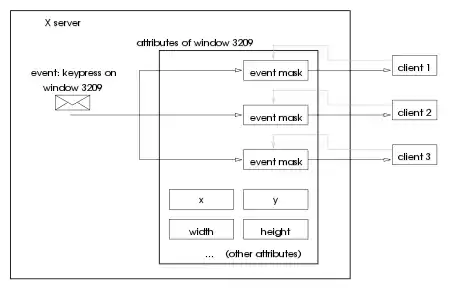 Различные клиенты могут запрашивать события одного и того же окна. Они могут даже установить различные маски событий на одном и том же окне. Например, один клиент может запрашивать только события клавиатуры, а другой — только события мыши. Однако, существует несколько типов событий, которые могут быть доставлены только одному клиенту. В частности, это события сообщений кликов мышью и некоторые изменения, связанные с управлением окном.