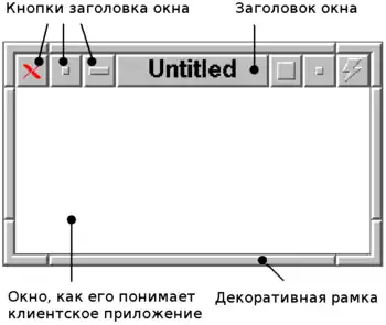 Декоративная рамка и заголовок (возможно, в том числе и кнопки), которые обычно наблюдаются вокруг окон создаются диспетчером окон, а не клиентом, который создает окно. Диспетчер окон так же управляет вводом связанным с этими элементами, такими, как изменение размера окна, когда пользователь нажимает и тащит оконную рамку. Клиенты обычно работают в окне, они созданы без учёта изменений производимых диспетчером окон. Так же надо учитывать те диспетчера окон, которые заменяют общее корневое родительское окно для окон верхнего уровня. Сейчас это делают большинство диспетчеров окон. С точки зрения основного протокола, диспетчер окон, является таким же клиентом как и другие приложения.