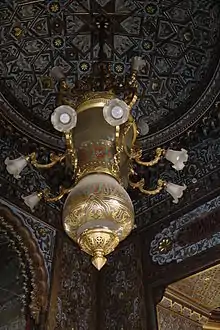 К Белому залу примыкает небольшая курительная с прекрасно сохранившимся роскошным декором. Это одно из самых ценных помещений дома. По моде того времени кальянная комната оформлена в восточном мавританском стиле. Сохранился купол курительной комнаты, а также небольшой угловой эркер с изящными полуколонками. Стены и купол этой «мавританской шкатулки» украшены ярко раскрашенной гипсовой лепкой с позолотой. Уникальная старинная люстра из стекла и латуни покрыта восточными рисунками и надписями. Люстра отражается в зеркале, что зрительно увеличивает пространство комнаты. По стенам курительной мелкой вязью идет повторяющаяся надпись «слава Аллаху».