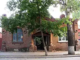 Фасад дома декорирован минимальным количеством элементов. Над входом в дом располагается арочный мотив, по сторонам вход окружают полуколонны. Этот же арочный мотив присутствует и в подковообразных наличниках окон, в фронтонах лучковой формы. Навес сделан из металла. Дверь — деревянная, резная[1]. С 1992 года дом признан памятником архитектуры и объектом культурного наследия[2].