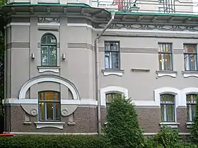 Примечательно, что стилевое решение в духе недавно вошедшего в моду модерна не очень нравилось Ивану Никифоровичу, считавшему ар-нуво слишком молодым и уверенному в его скором исчезновении. Однако Дмитрий Никифорович одобрил вариант зятя. Ритмику фасадов образуют плавные оконных арок и двери, интересна резная деревянная веранда второго этажа. Фриз украшал орнамент с лилиями. Вокруг дома был разбит живописный сад[2][3].