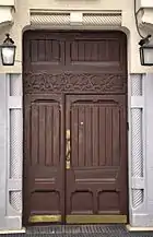 Обладая свойственными модерну характеристиками, здание, вместе с тем, несёт отпечаток стилизованных мотивов романского зодчества, подмеченных архитектурными обозревателями ещё в начале XX века. Их присутствие видно в рисунках деревянного полотна входной двери и каменных растительных орнаментов, проявляется в использовании отдельных ордерных элементов, оформлении массивного цоколя и трактовке колонки лоджии[83][84].
