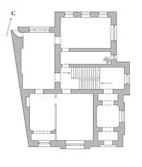 - Соседний дом, определяющий трапецевидный общий план особняка, изначально был деревянным, затем его заменили каменным, а в советское время полностью перестроили и надстроили.