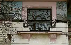 Окна индивидуальны по размеру, форме и декоративному оформлению, которое сочетается с рисунком ограды лоджий. Решётки окон напоминают вьющиеся ростки дерева, а балконная решётка уподоблена рыбьей чешуе. Спираль являлась авторской особенностью орнаментики Шехтеля: в особняке, помимо растительных завитков, примечательны также созданные из спирали глаза сов на балконах. Верхняя часть здания украшена проходящим по периметру широким мозаичным фризом с изображением орхидей. Окна и их обрамления, фриз и карниз особняка намеренно укрупнены Шехтелем для создания гиперболизированного эффекта, выделявшего здание на фоне остальных. Визуально одинаковые оконные проёмы четырёх этажей на самом деле последовательно уменьшаются, придавая постройке бо́льшую высоту[36].