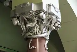 Второй этаж символизирует земной мир, наполнен аллегориями противостояния добра и зла. Это наглядно демонстрирует внушительная колонна, проходящая сквозь первый и второй этажи. Её замысел отсылает к дереву познания, которое украшают четыре лилии, символизирующие добро, и саламандры, олицетворяющие зло[38].
